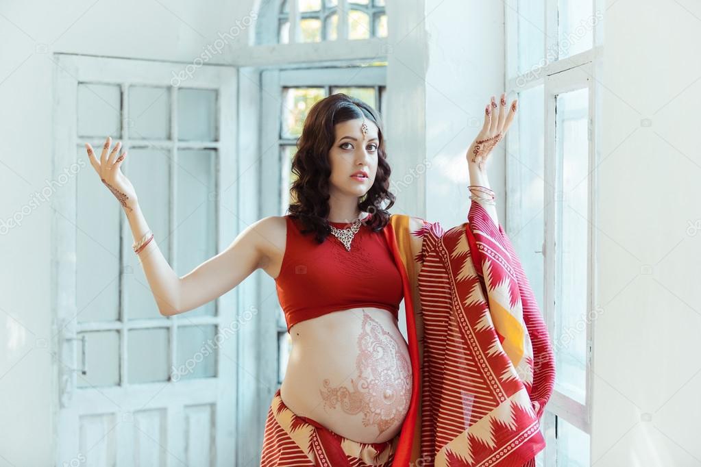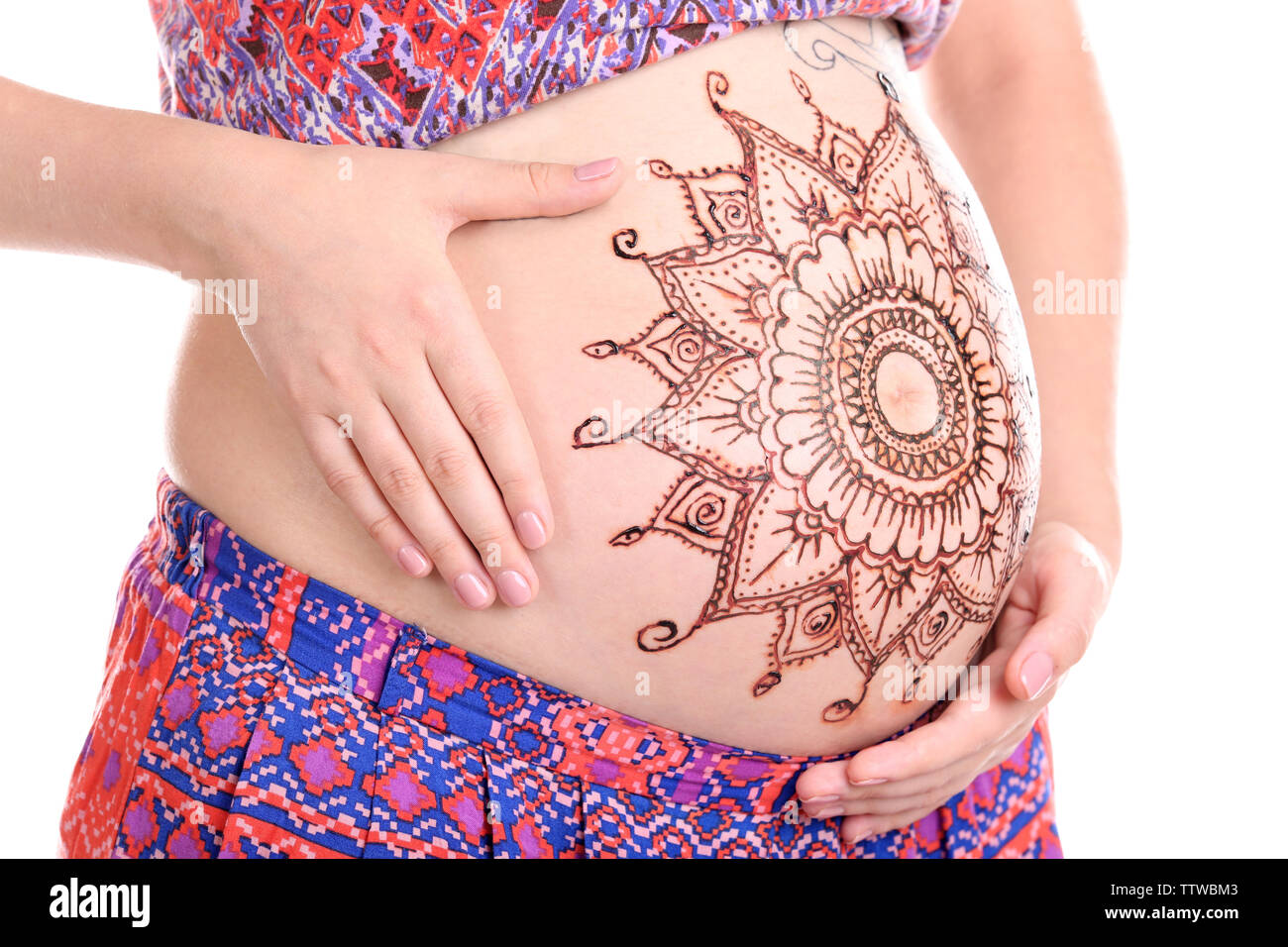 Pregnant Girl With Henna Tattoo On Her Belly Studio Stock Photo Picture And Low Budget Royalty Free Image Pic Esy 030308368 Agefotostock